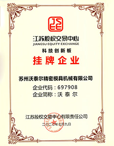 蘇州沃泰爾精密模具機械有限公司,座落于蘇州市相城漕湖開發區,比鄰上海、杭州、南京,地理位置優越,為江蘇省高新技術企業,現有授權實用新型專利35項,審核發布發明專利3項。
